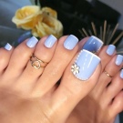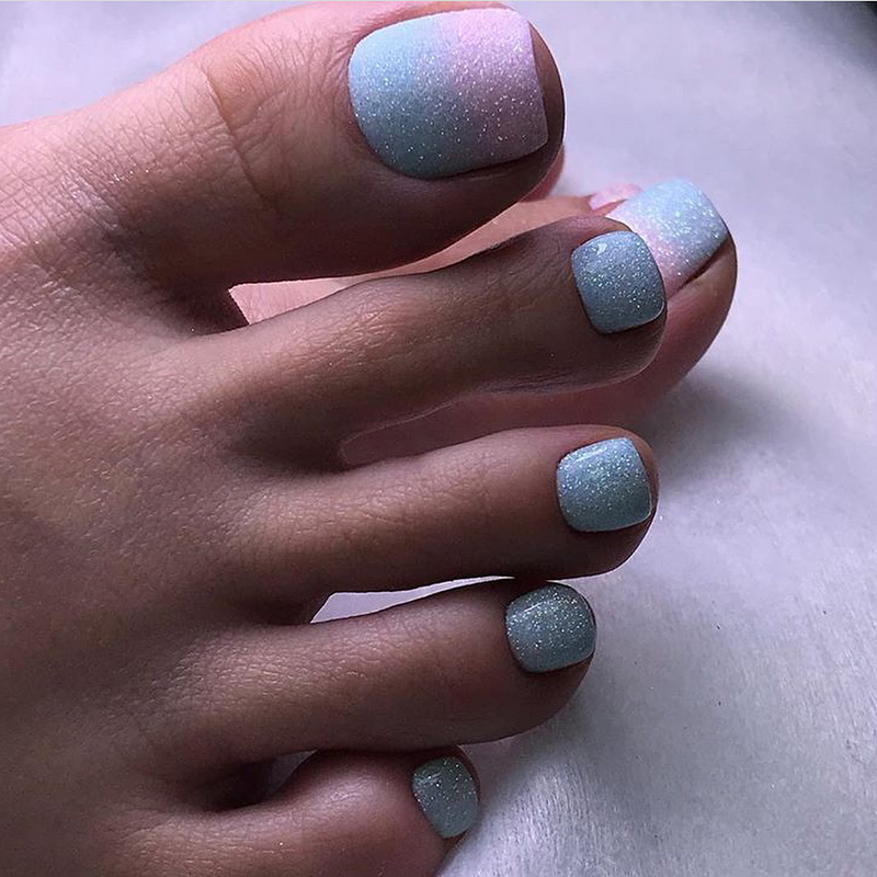 For those who prefer more conservative colors, it is recommended to pay attention to the pedicure in blue tones. This shade is the golden mean between catchy (defiant) and restraint. It is also worth noting that it goes well with denim clothing.