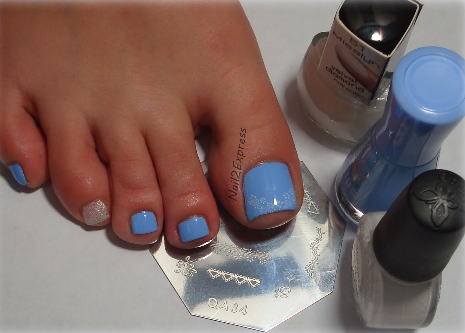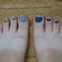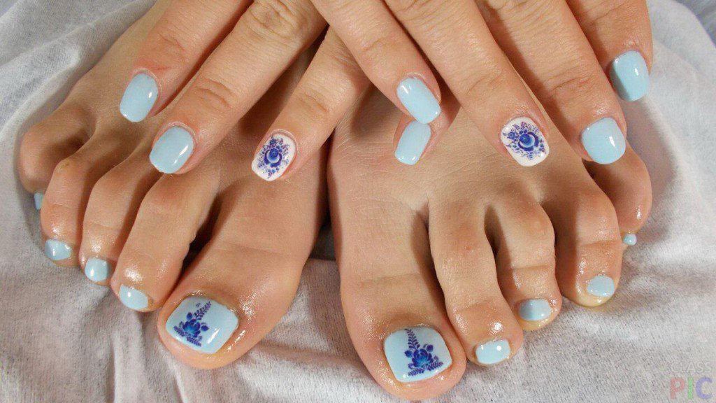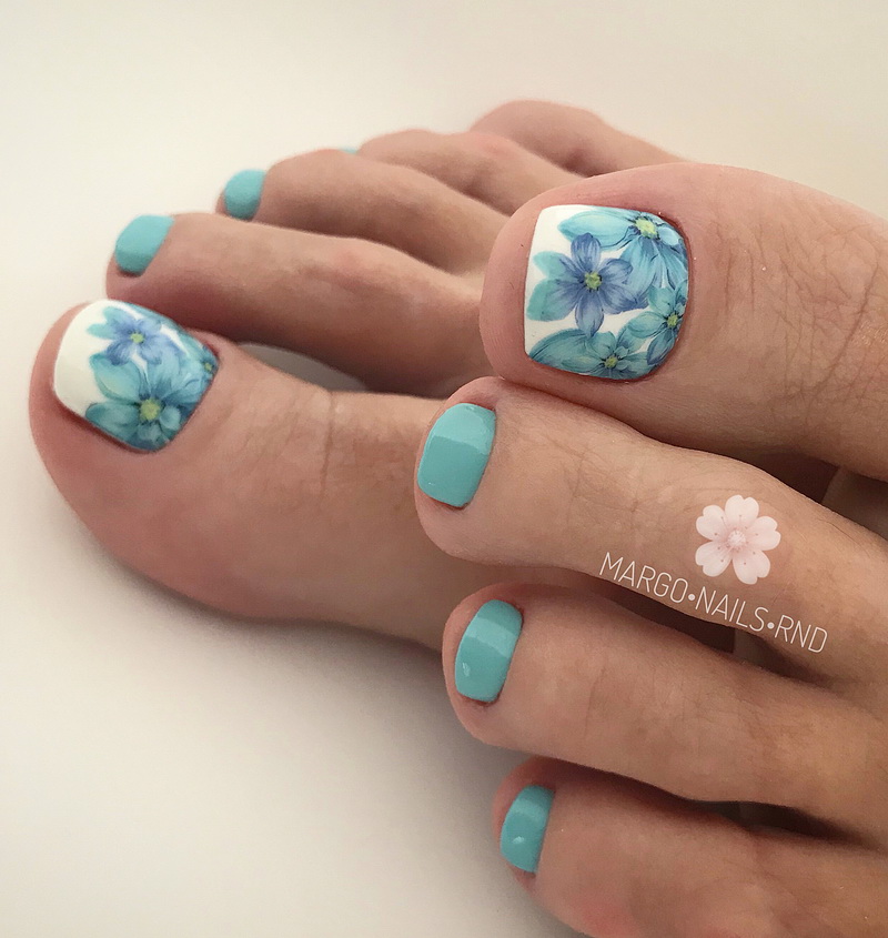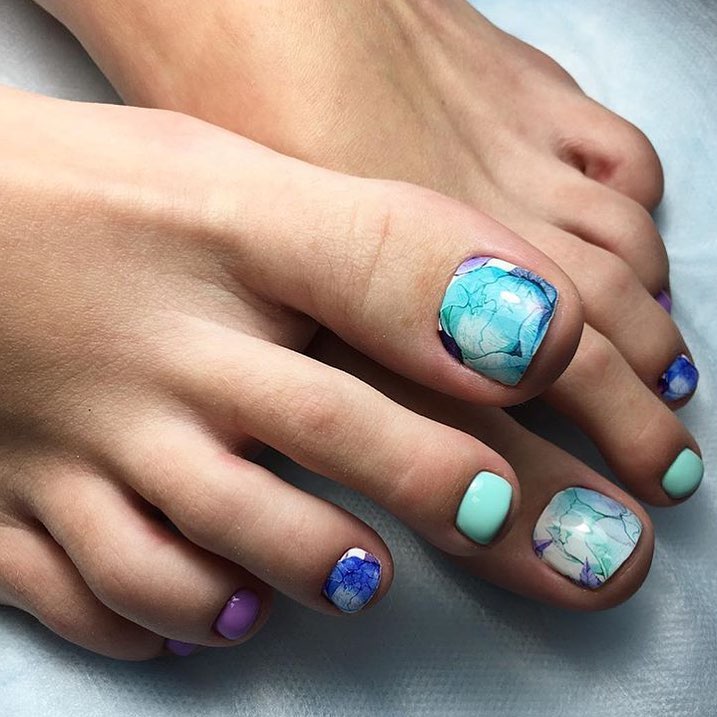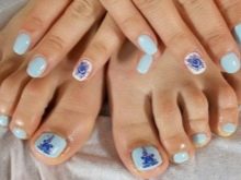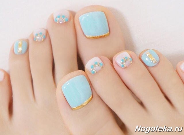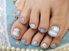 But try not to perform a pedicure in accordance with all the "rules", as if for a carbon copy. Bring some of your own, connect the fantasy. And a large palette of color shades of blue will help you in this.