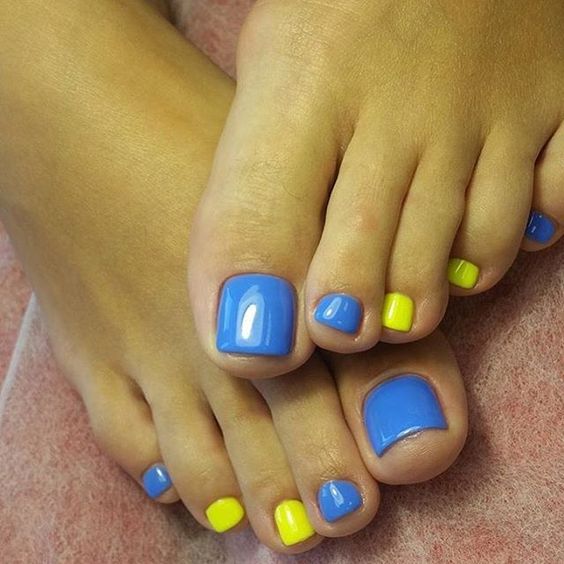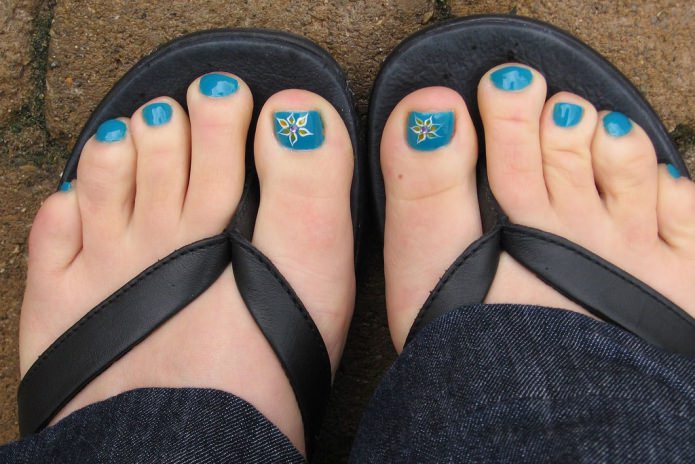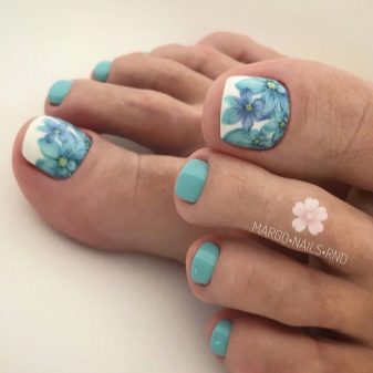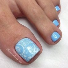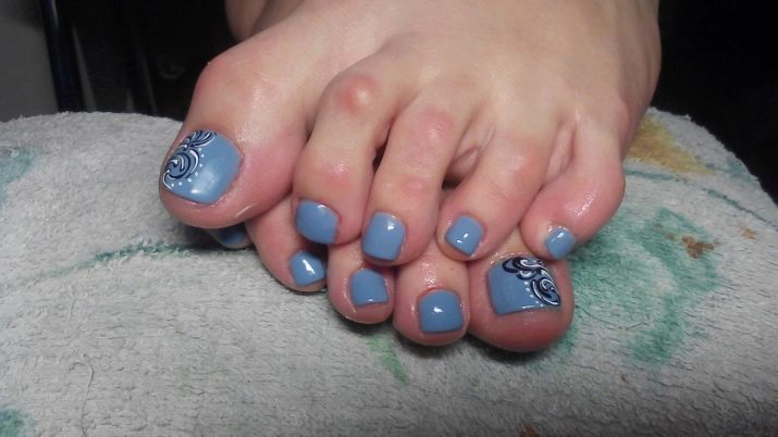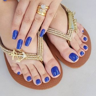 Having decided to perform a pedicure in this direction in the winter, it is advisable to give preference to the cold blue shade. In the summer, you can pamper yourself with a bright and saturated blue electrician.