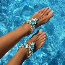 Going to sunbathe on the beach, put a small chain on your ankle. It will not only attract the eye to your beautiful pedicure, but also to your graceful and slender legs.