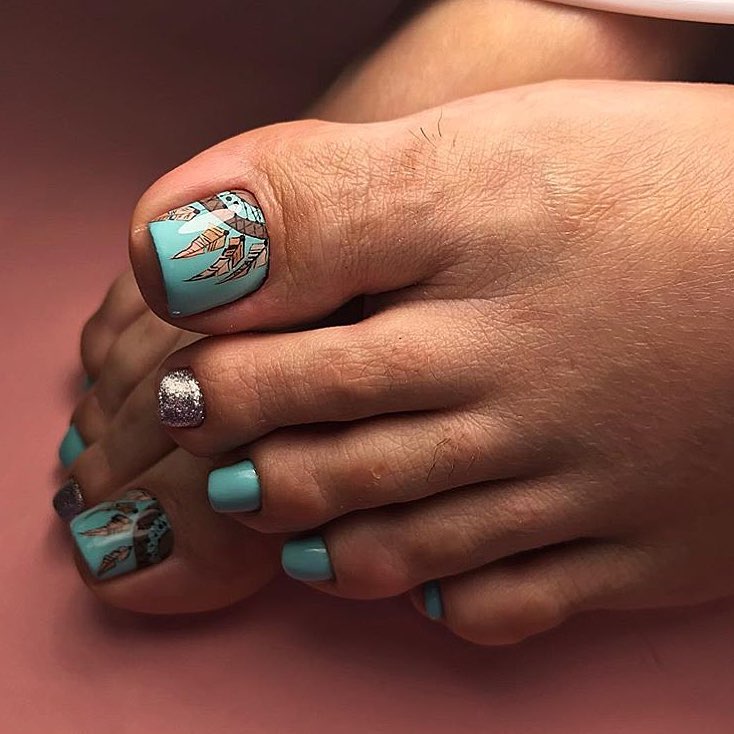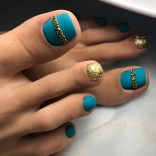 Even if you do not plan to send on vacation at sea, a pedicure made in blue colors will delight you throughout the summer.