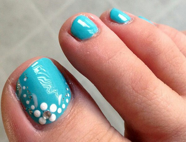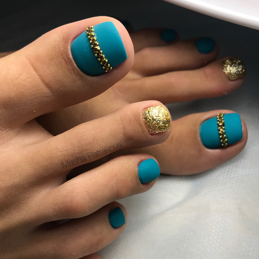 By and large, pedicure in blue colors to perform independently and at home is pretty easy. And stress fresh pedicure can pick up the appropriate decorations of gold or silver.