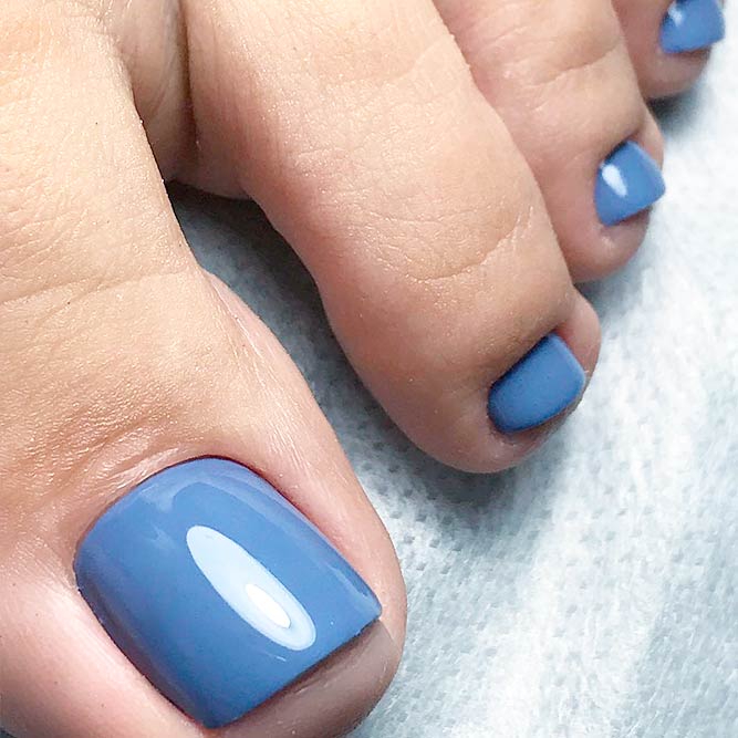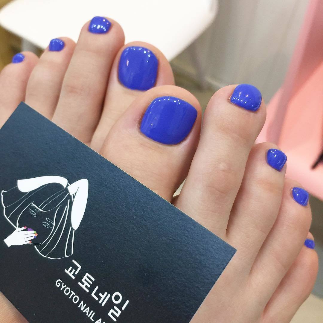 - To date, the most fashionable trend is dark blue monochromatic shellac coating. The highlight of this pedicure is a clean and eye-catching blue tint.