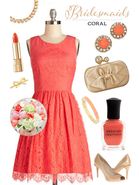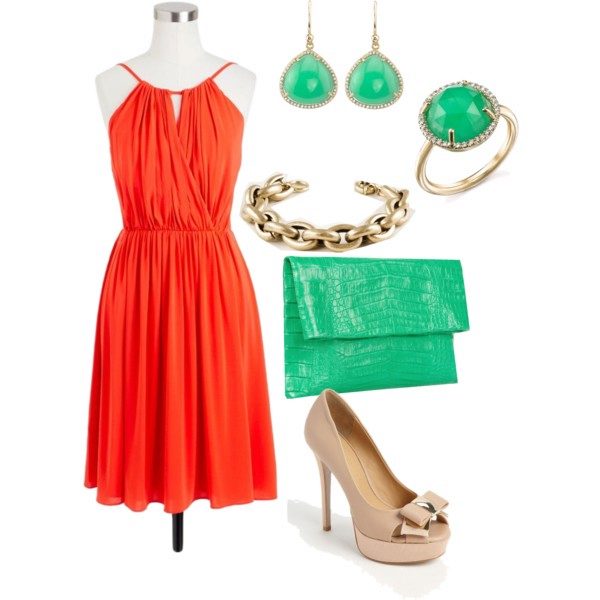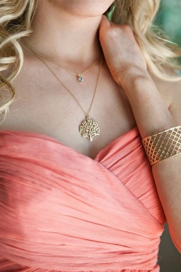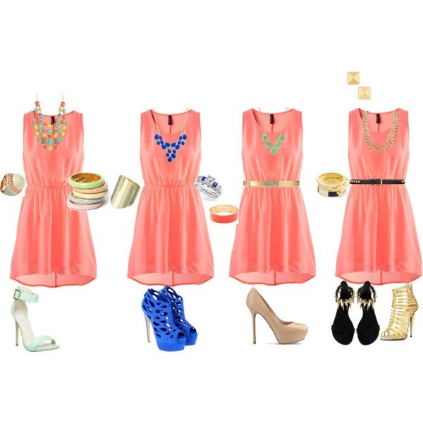 Gold or silver jewelery will suit a coral dress made of chiffon; topazes, alexandrites, amethysts and diamonds.