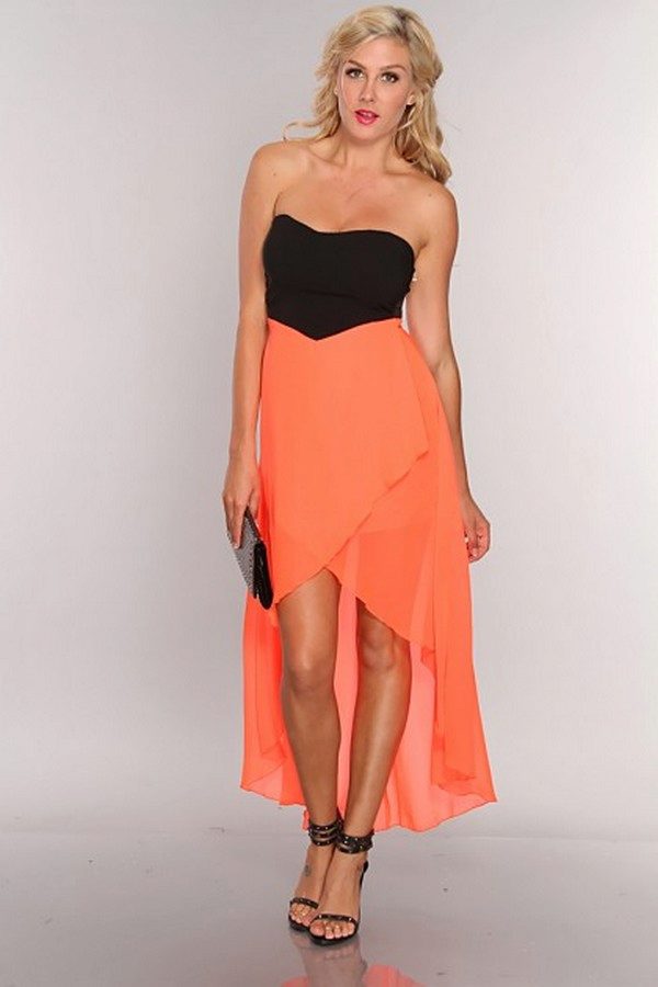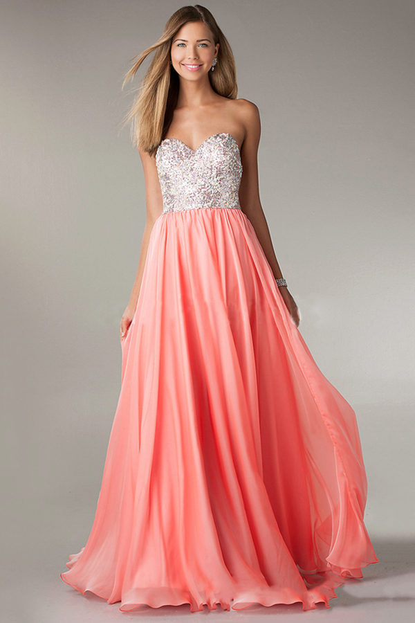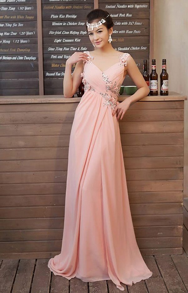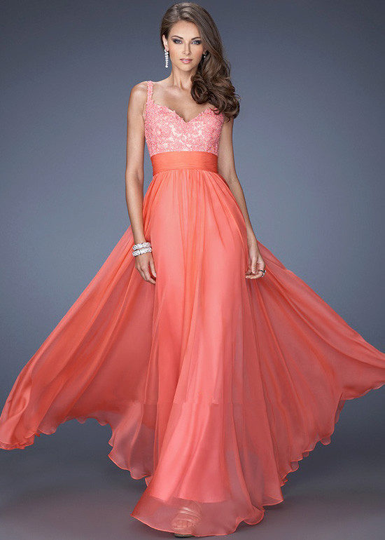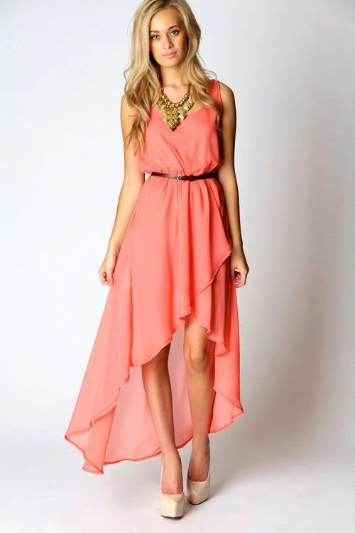 For summer romantic evening, perfect chiffon coral dress. Light and transparent chiffon will create a weightless and airy image.