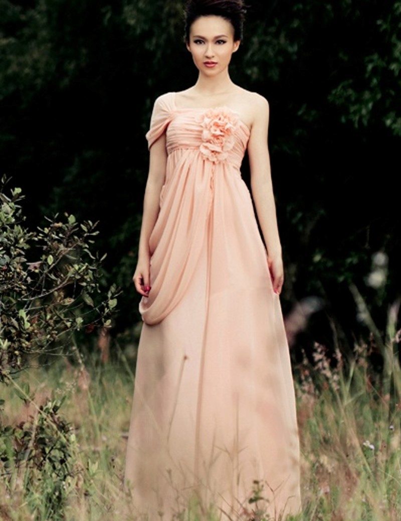 Pearl coral pink. Dress of this shade is incredibly light and gentle. It can be worn day and night. Jewelery made from pearl or moonstone will perfectly fit into the created ensemble and add magical notes.