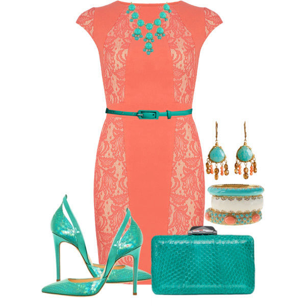 For a coral dress, designed for everyday life, do not use large and massive jewelry. A thin bracelet and elegant earrings will be enough.