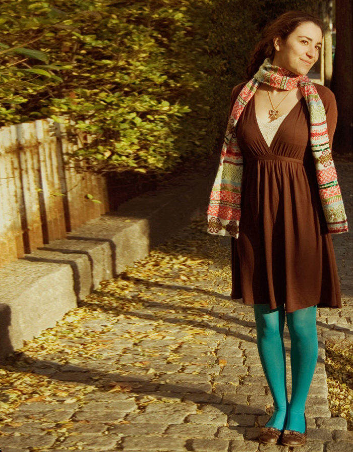 Do not forget about the bright accents: emerald green, orange or maroon panty hoses are perfect for a brown-colored dress for girls with a hint of shocking.
