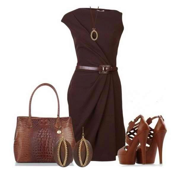 Dark brown color is more strict and restrained, therefore it is often chosen for business suits, training uniforms, etc. A dark brown dress is an excellent option for work, especially if you have to turn in business circles.