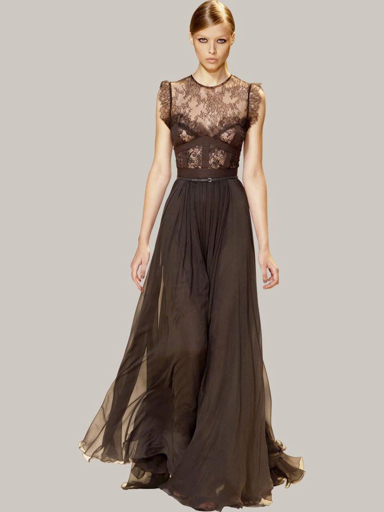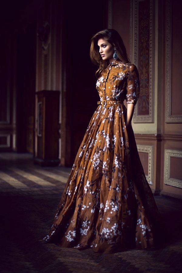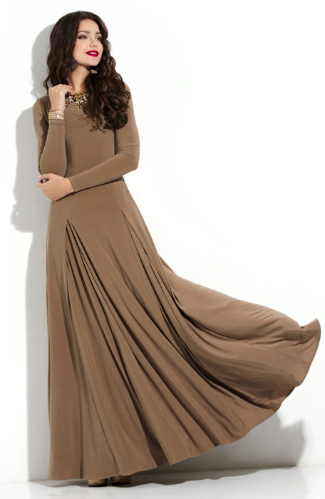 A long brown dress can be both strict and romantic. For ceremonial exits you should choose a dress of lighter shades, although if you have a spectacular decor or style, a dark brown dress will be an excellent choice.