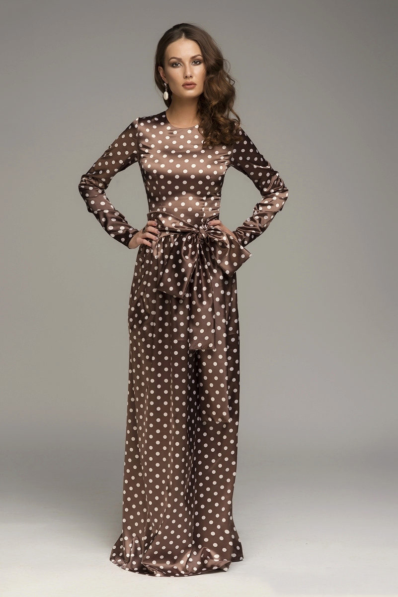 Polka-dot dresses were especially popular in the middle of the last century - our grandmothers wore them with pleasure. The brown dress in white peas is a real classic of the time.