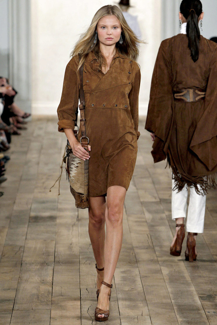 A dress made of leather (natural or artificial) is a rather bold decision. Not every girl dares to dress in leather outfit, as it will certainly attract the attention of others. Brown leather dress should not be long, the maximum - to the middle of the knee. It is better if the dress is narrow and emphasizes the elegance of your figure.