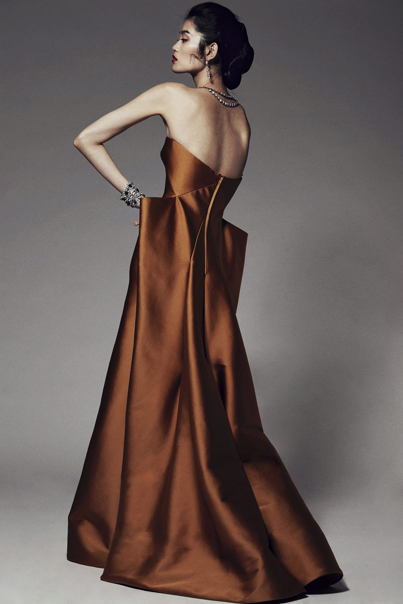 Do not forget that complex designer dresses are self-sufficient. Do not overload the image with details.