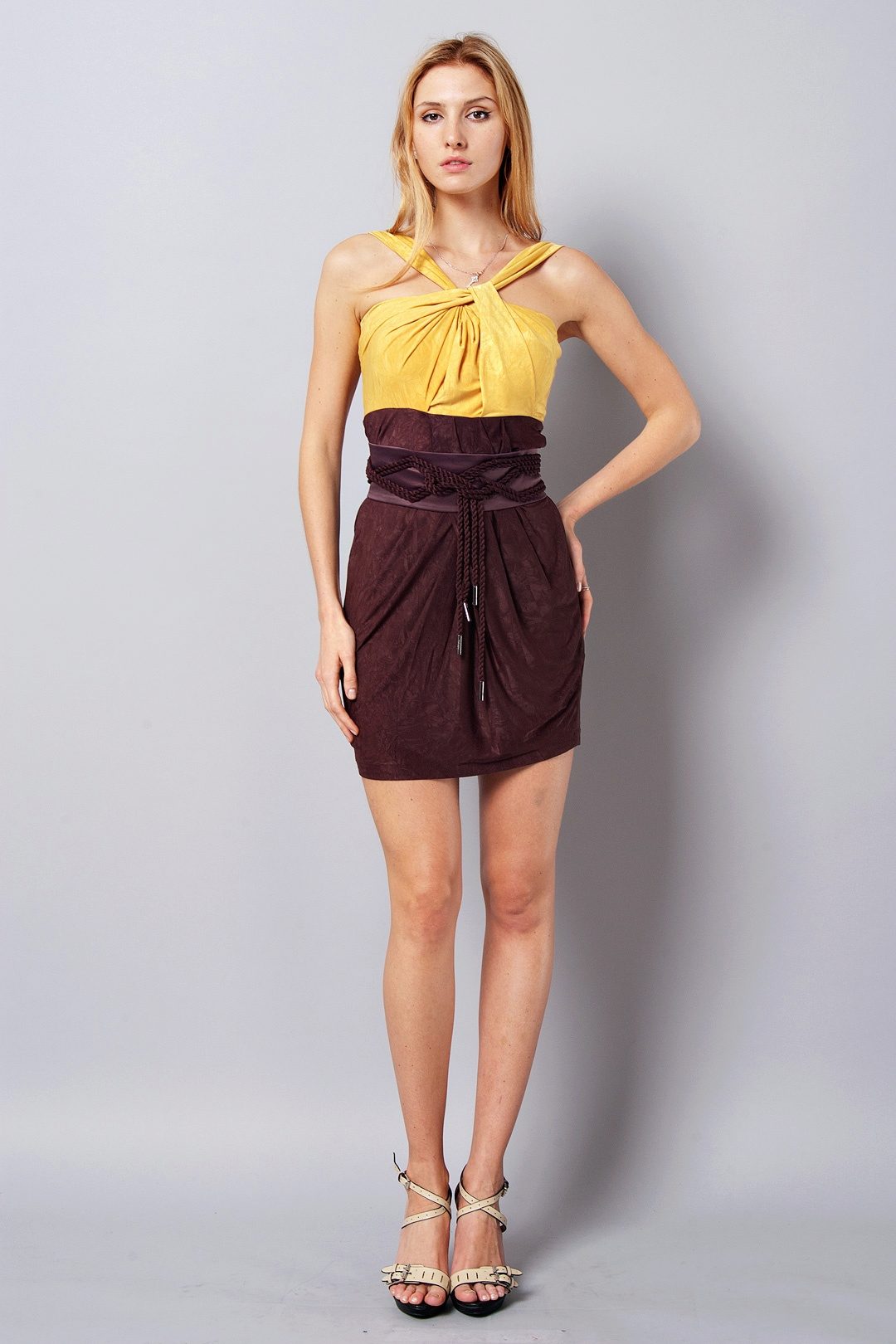 A short brown dress in itself looks very laconic. But in this simplicity lies both grace and elegance. Brown mini-dress is recommended to liven up with flashy, stylish accessories that are surely contrasting in color. A belt of bright leather, large earrings or a necklace, an unusual handbag - a pair of such details will make the image thoughtful and memorable.