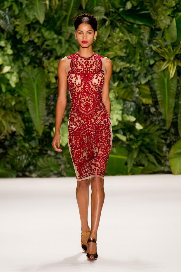 Another spectacular combination for brunettes is a crimson dress in combination with apple-green elements. Blondes, as always, are preferable to gentle, almost pink shades. But if you consider yourself to be a color type “summer”, then the saturated crimson color of the dress will be your face.