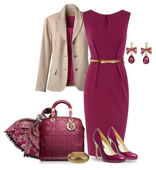 The combination of crimson and color of ripe cherry, as well as burgundy, dark and light pink tones can be attributed to mono-combinations. For example, wearing a raspberry dress with raspberry shoes, you risk becoming too sweet a woman, causing subliminal associations with your grandmother's raspberry jam. Whereas, in an ensemble with pink shoes and a burgundy clutch, you will resemble the surrounding poetic flowers of a wild, indomitable rose.
