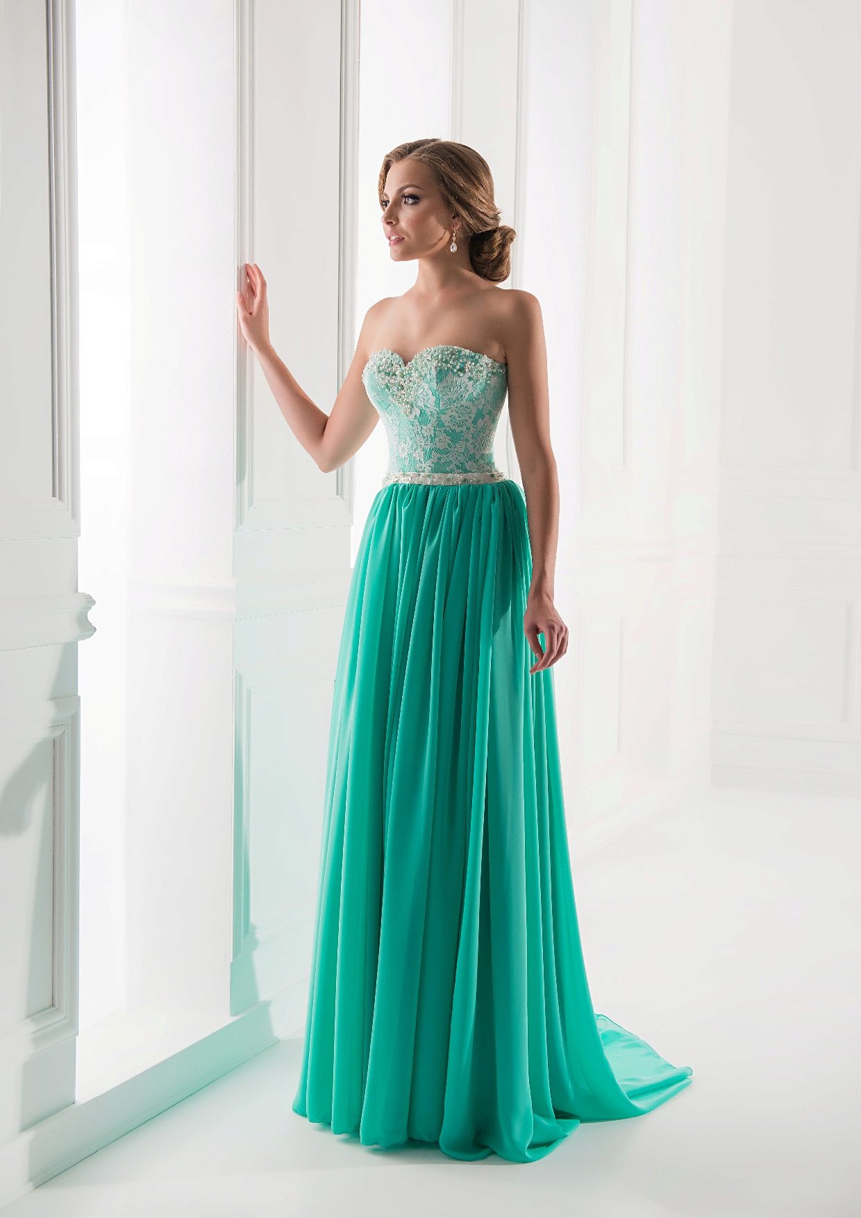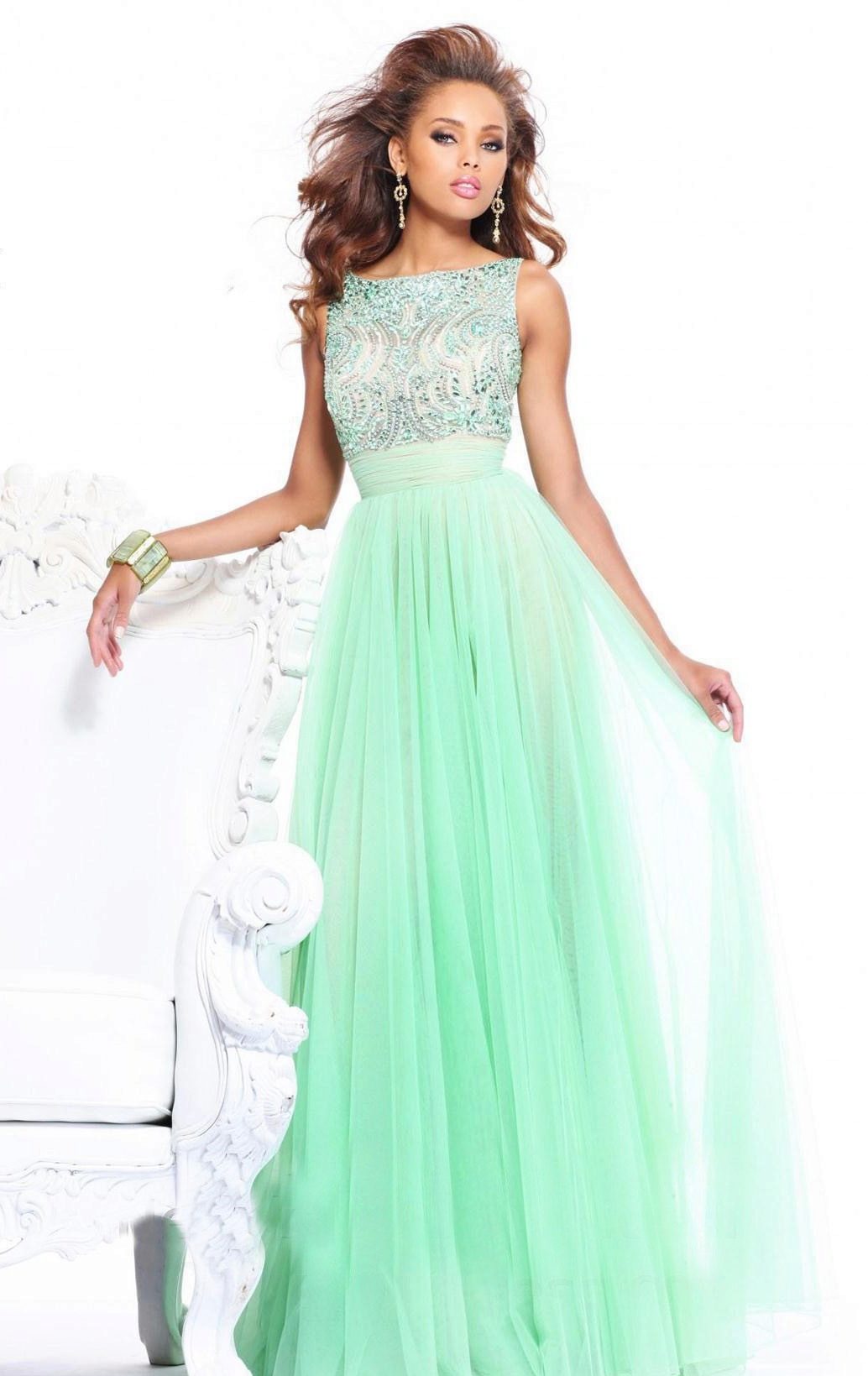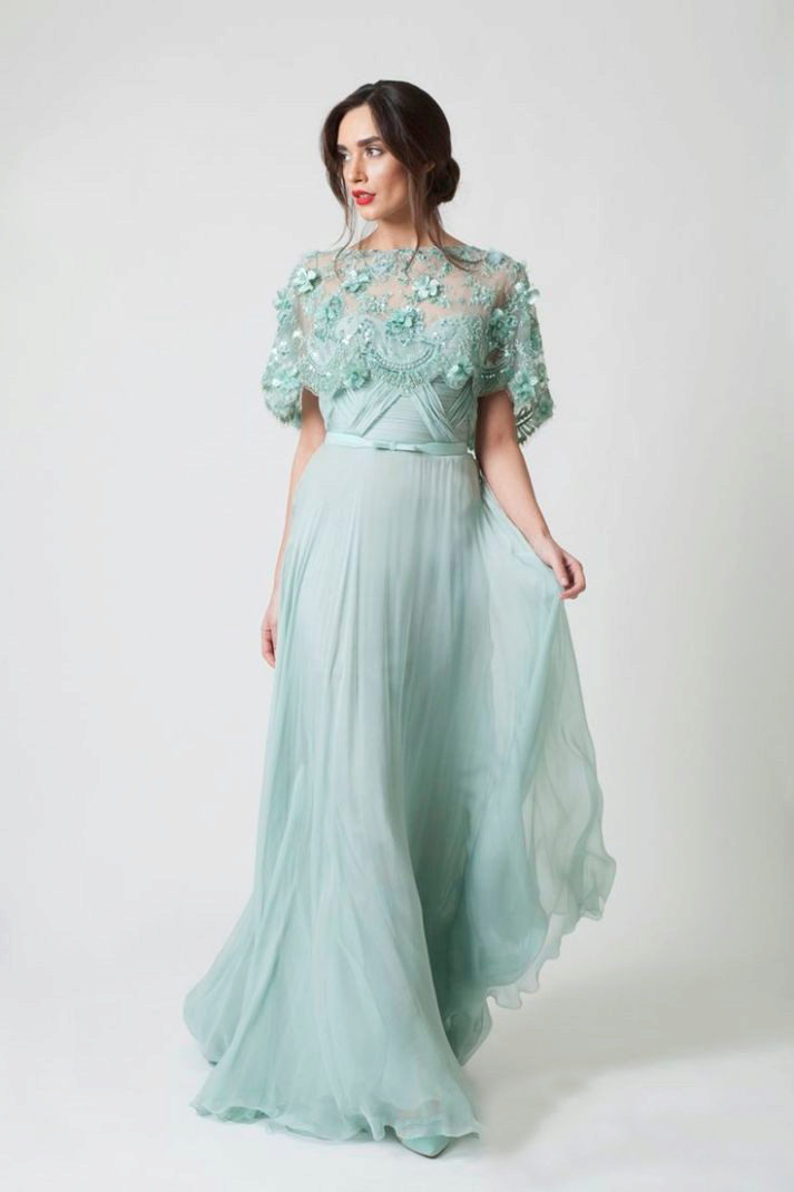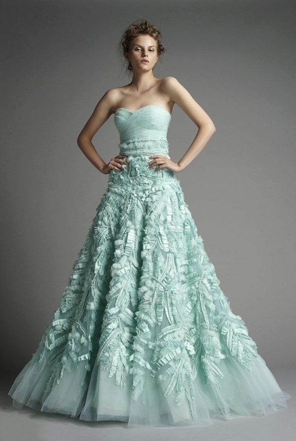 Lush mint dresses are made of tulle, organza, taffeta and other elegant fabrics. They are selected accessories suitable for the occasion, for example, jewelry in white gold.