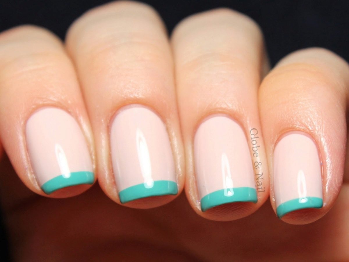Under the mint dress, especially for tanned hands, it is recommended to choose a pale turquoise color varnish. This shade of lacquer successfully combined with white and delicate yellow color.