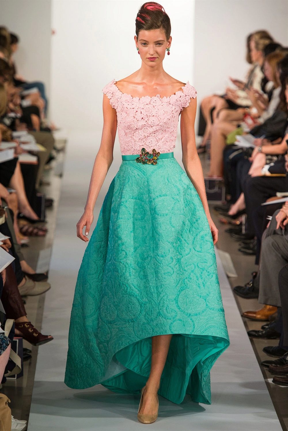 Blondes are more bright colors, for example, with an emerald or turquoise accent, and red-haired girls and brunettes should stop buying a dress of a more muted mint shade.