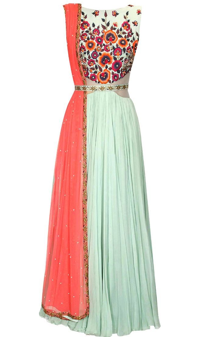 In mint color, long dresses look light and romantic. Complement this dress with stylish sandals or stiletto, as well as accessories to match, and you can go on a date.