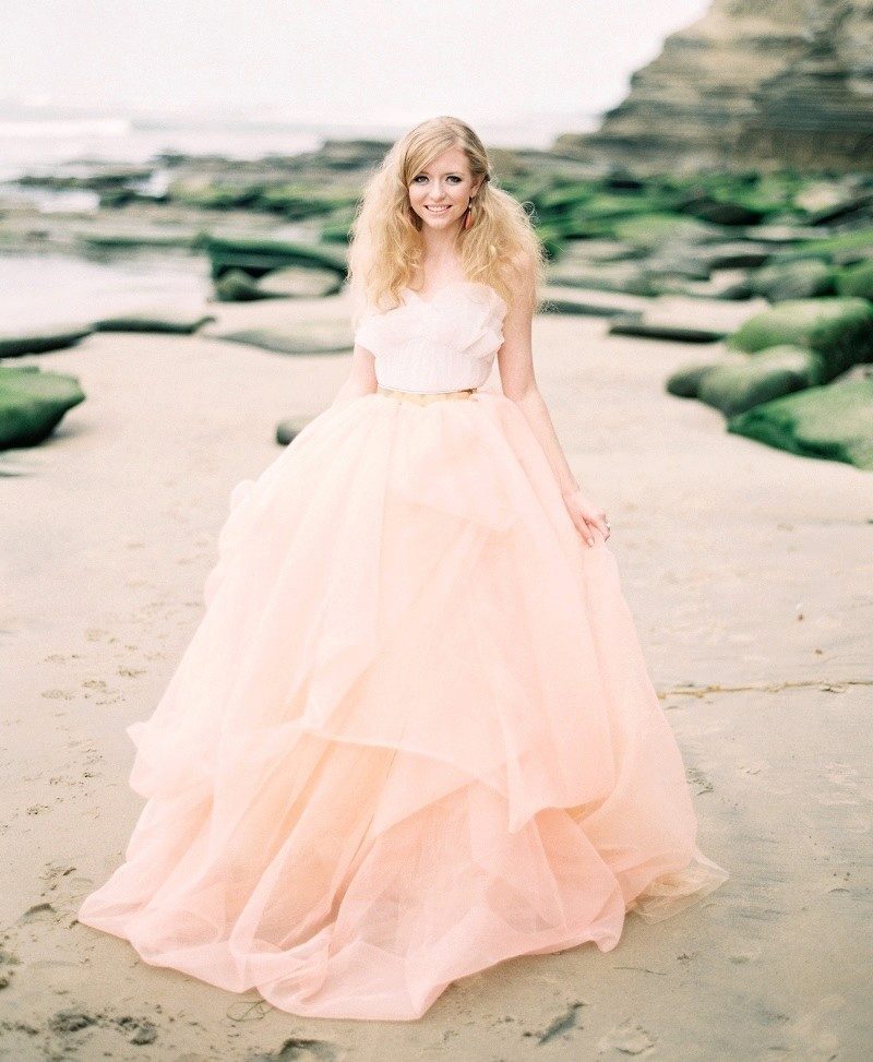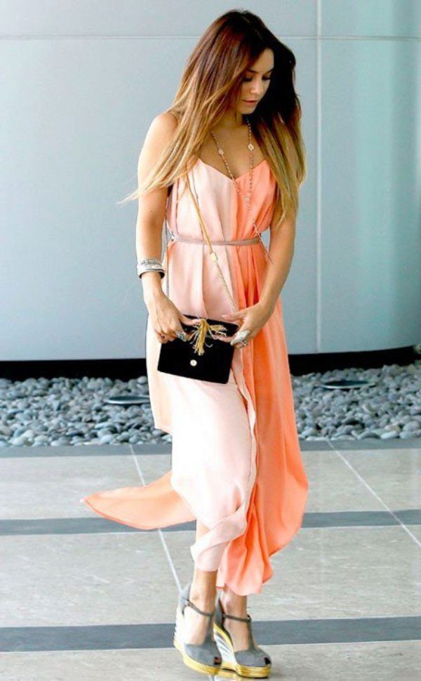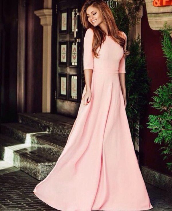 A dress with a pink shade will look cool and warm at the same time. This will help in creating a balanced and very calm image. But, if you add such a peach outfit with sequins or rhinestones, you will have a spectacular look for an evening event.