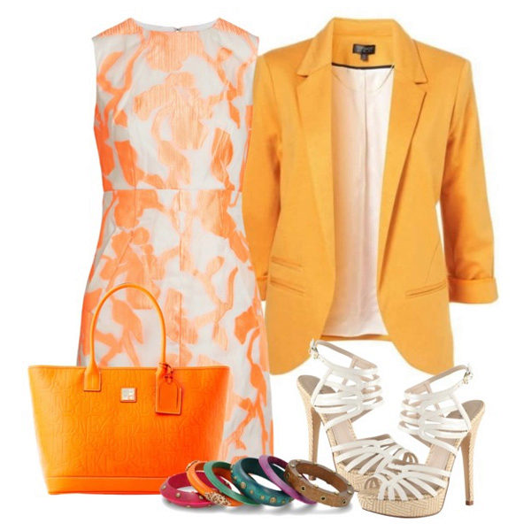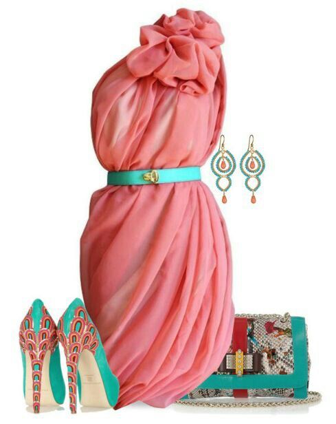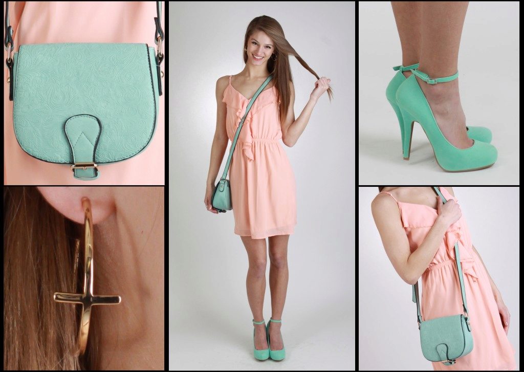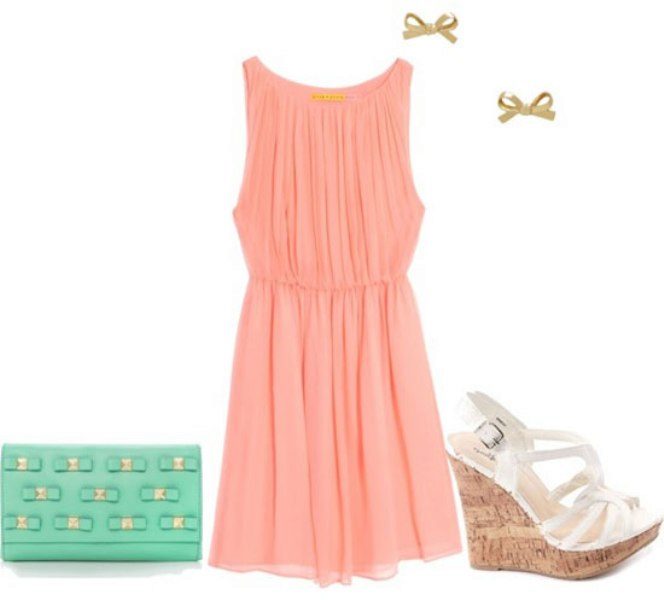 Choosing orange shoes and a bag for a peach dress, you can go to a restaurant for dinner, and a combination of peach and green is appropriate for a romantic walk.
