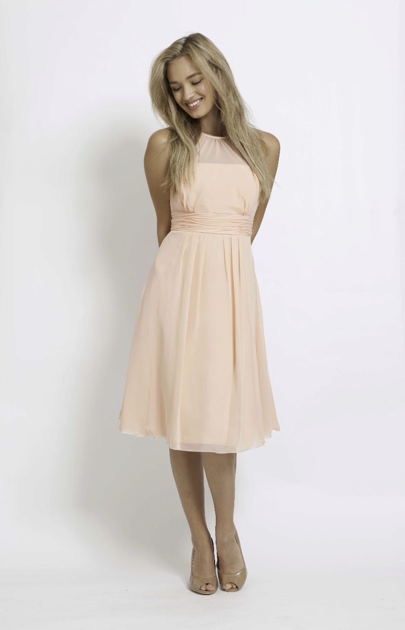 Pale peach dress is best suited for girls with a golden skin tone.