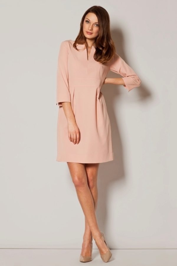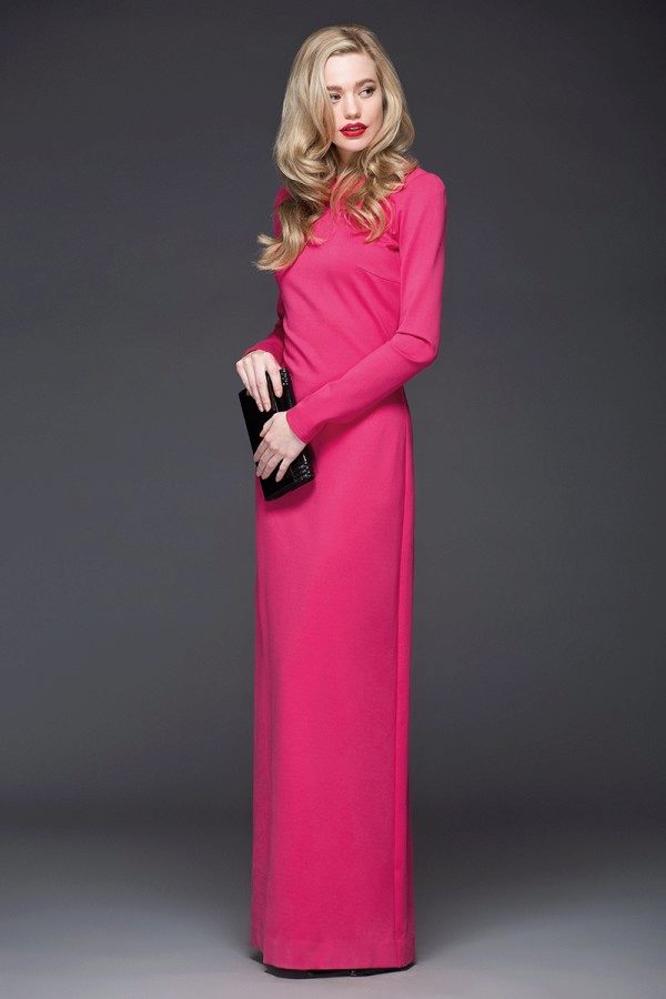 The dress of pink color with sleeves is suitable for everyday life in warm time, and with long sleeves it is comfortable when it is cool outside.