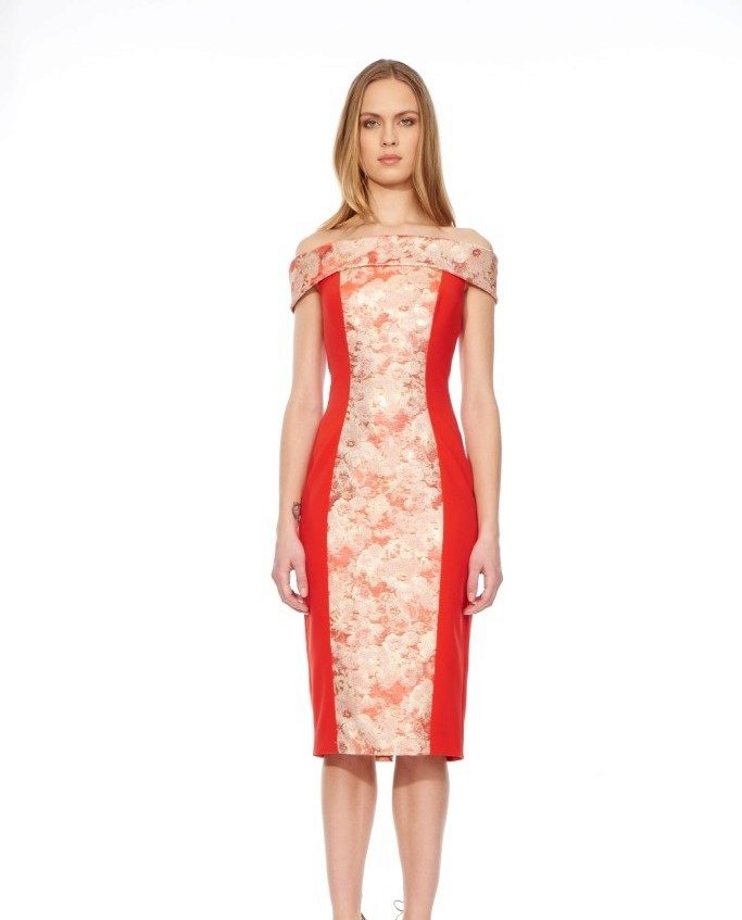 If you are going to party, a bright crimson dress, a high contrast platform, a small clutch will make you a star of the event.