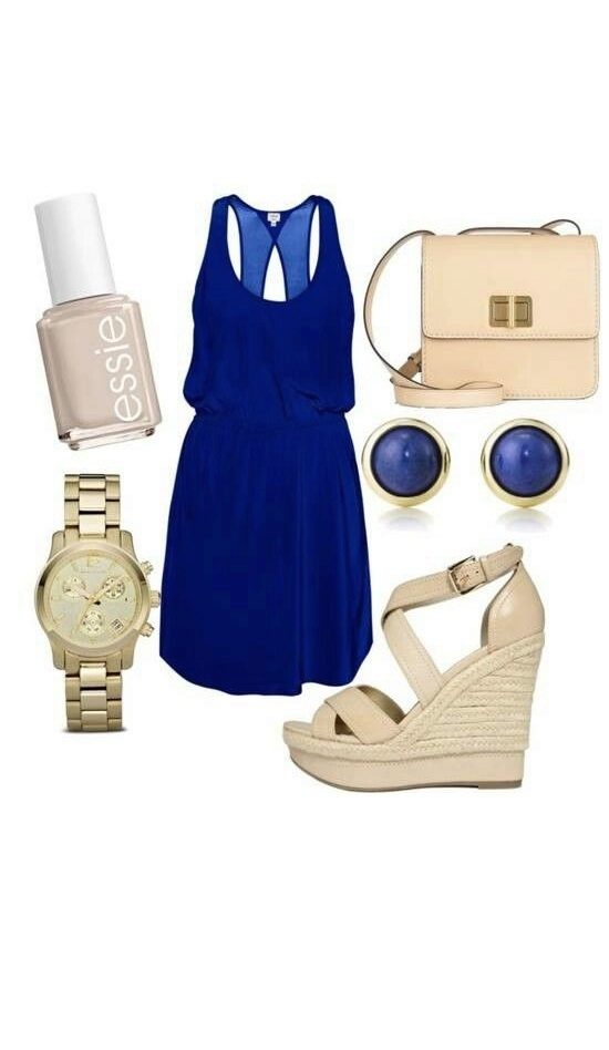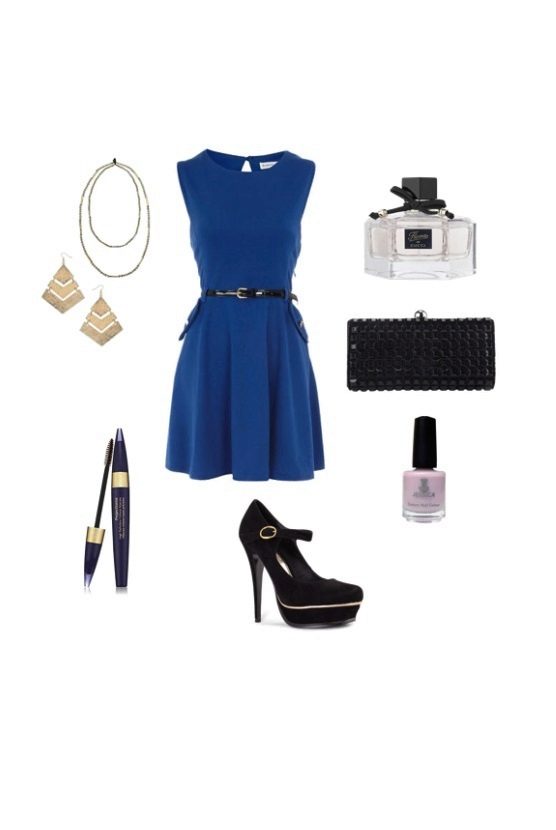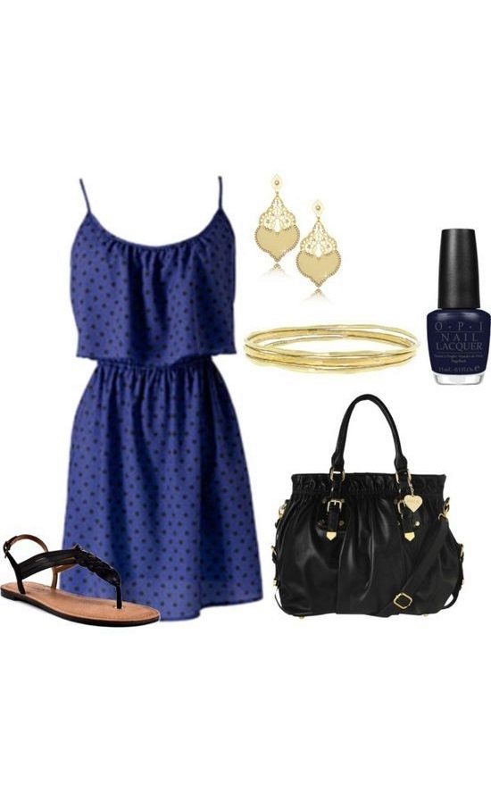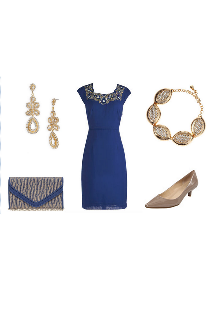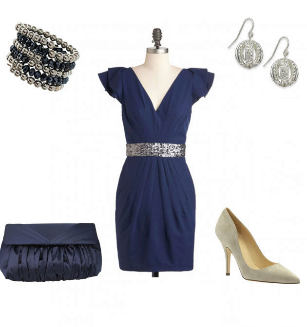 Well, if your wardrobe has shoes of black or beige color - they are perfect for a dark blue dress, however, as well as for almost any dress.