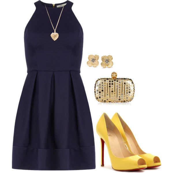 Red, yellow or green shoes will look with a dress of dark blue color really impressive, provided that you manage to guess with a touch.