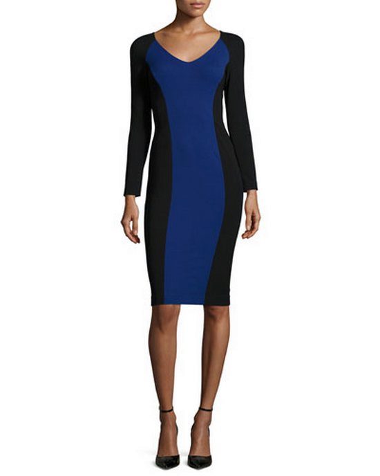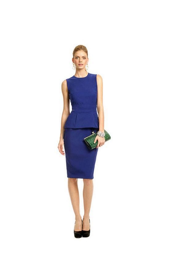 Such dresses were at the peak of popularity in the middle of the last century and they were worn with pleasure by Edith Piaf and Audrey Hepburn. Today, a sheath dress is considered a universal wardrobe item, which is appropriate at a business meeting, on a date, and at a party. A dark blue case will be your solution for all occasions. Diversify the image will help properly selected accessories.