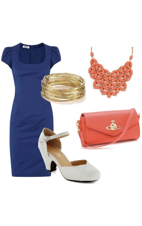 The unexpected combination of dark blue and orange looks summer-like bright and romantic. This color is best suited for light, feminine dresses - with a clearly marked waistline and flared skirt. The orange-blue color scheme is reminiscent of the bright colors of exotic birds or tropical flowers. Dress in orange and blue should be taken with you to rest, because it perfectly sets off a beautiful southern tan. In this outfit you just will not go unnoticed.
