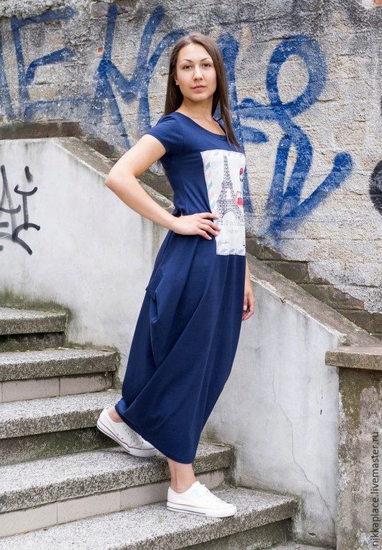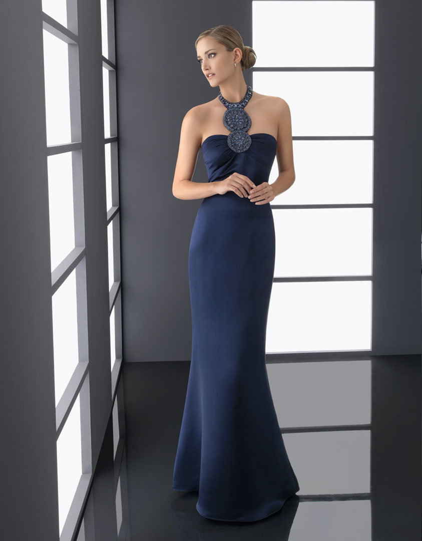A long dress in dark blue is, of course, an option for special occasions. Wedding, graduation party, New Year's Eve - these are exactly the situations when the dress to the floor will be most welcome.