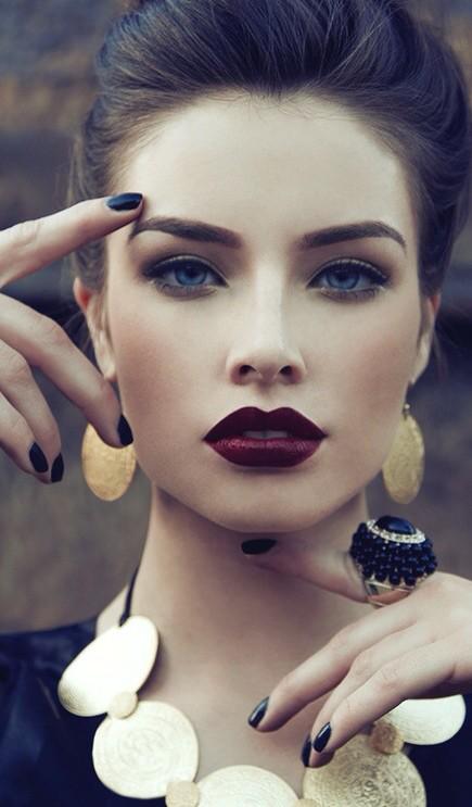 Light glossy varnish allows you to hide all the defects of the manicure, besides, it always looks natural and does not catch the eye. For everyday manicure to a dark blue dress, we advise you to choose a delicate pink or beige lacquer. To create a bright image, use lacquer saturated colors, such as scarlet or emerald.