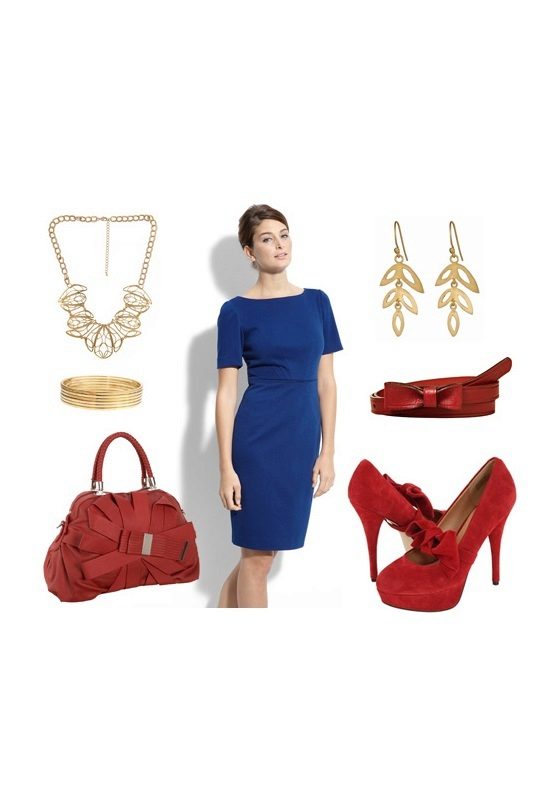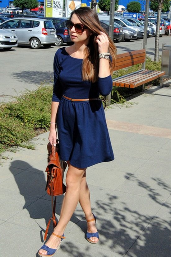 Having accompanied a dark blue dress with glossy red shoes and the same lipstick, you can turn into a real seductress. And putting a strict jacket over a dark blue dress and taking up a voluminous clutch of matte leather, you can play the role of a business woman.