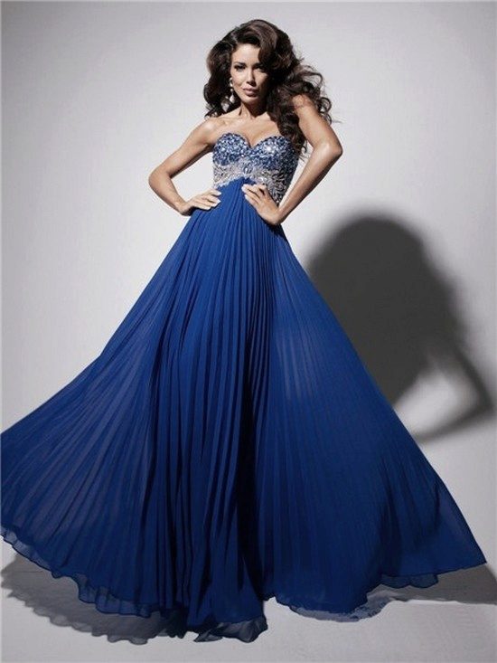 A long dark blue dress can be with a bodice or with a closed bodice, have a fitted skirt or a fluffy one. There are evening models with long guipure sleeves, as well as asymmetrical dresses with only one sleeve. A girl dressed in a long dress in dark blue, as if shrouded in mystery, therefore inevitably arouses the interest of others.