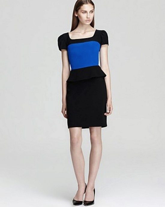 The combination of dark blue and black is a classic color scheme for business suits and evening dresses. This discreet combination is perfect for official events. To make the image not too dark, it is recommended to add it with contrasting details. For office attire, it can be a light strap or shirt (if the style of the dress allows you to wear a shirt under it).