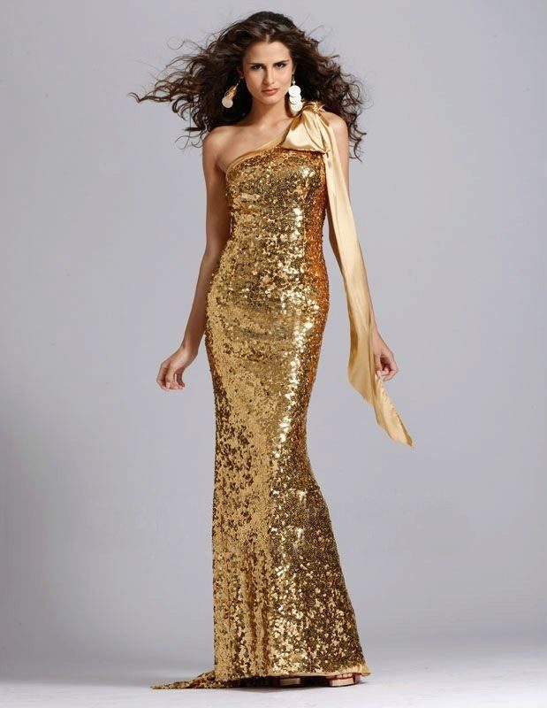 Do not forget that the golden dress is not for everyday life, but for celebration. High-heeled shoes are a must-have attribute.