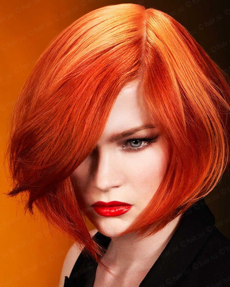 Ryzhina should be not only bright, but also sleek, status, elegant. Without care, strands of red tones look very unattractive, so it is recommended for ryushik girls to maintain a healthy hair shine, to do styling and haircut in a timely manner. This hair color looks great on any length: and medium, and short, and long hair can make a terrific impression with proper flow. Whether you have bangs or not, it is enough to keep the natural color or to work with fashionable dyeing techniques: ombré, balaraj, it is up to you to decide.