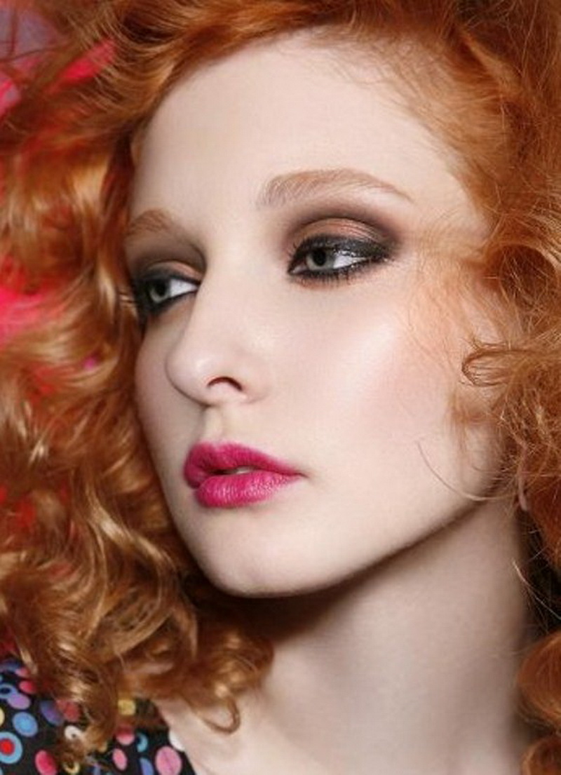 Another important point - competent fashion makeup. It is necessary to correctly emphasize the natural brightness, choose the shadows, the color of eyebrows, lipstick, blush, which are appropriate to the color type. There are universal tones suitable for all red-haired ladies. As a rule, these are the colors of a warm gamut. For girls with blue, green, brown eyes, shades of beige and brown shades, blush colors of light brick, lipstick of terracotta shades will do. It is very important to observe the measure when choosing saturated colors. The rule - the darker the hair, the brighter the shades of make-up - will keep it within. Blue eyes, you can choose cool shades of shadows: bluish, gray, blue, purple. Kareglazkam perfectly fit the whole range of green, and those who have green eyes - sand, brown, olive tones.