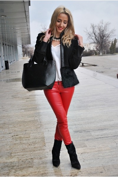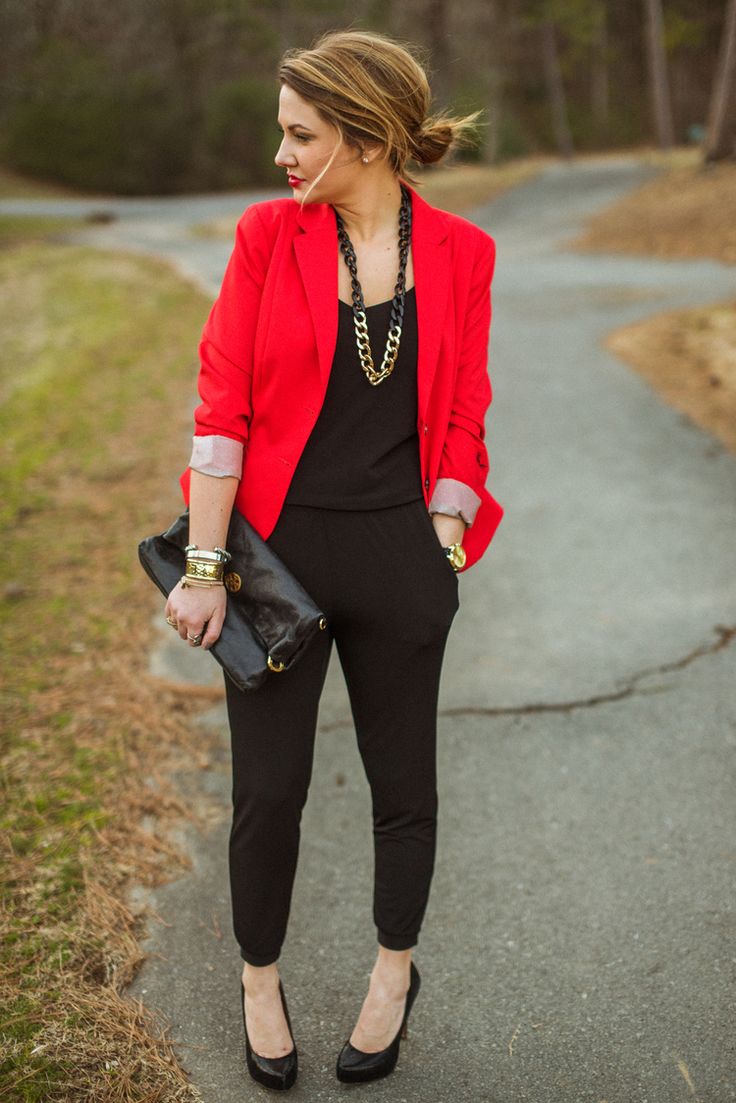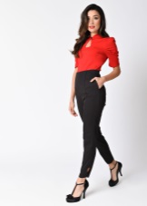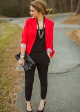 In a business wardrobe, you can allow yourself to combine black pants and a red shirt or blouse. The combination of red pants and a black blazer will be appropriate not only in the office, but also suitable for a cocktail with friends after a long working day.