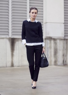 Black can often be found in the business wardrobe, because it helps to emphasize severity and conservatism, is a symbol of strength and purposefulness.