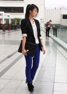 If you choose not bright shades of blue, you will have a very successful combination for a business image. Psychologists believe that such a tandem inspires confidence in business partners, without another word indicating that you are a professional in your field.