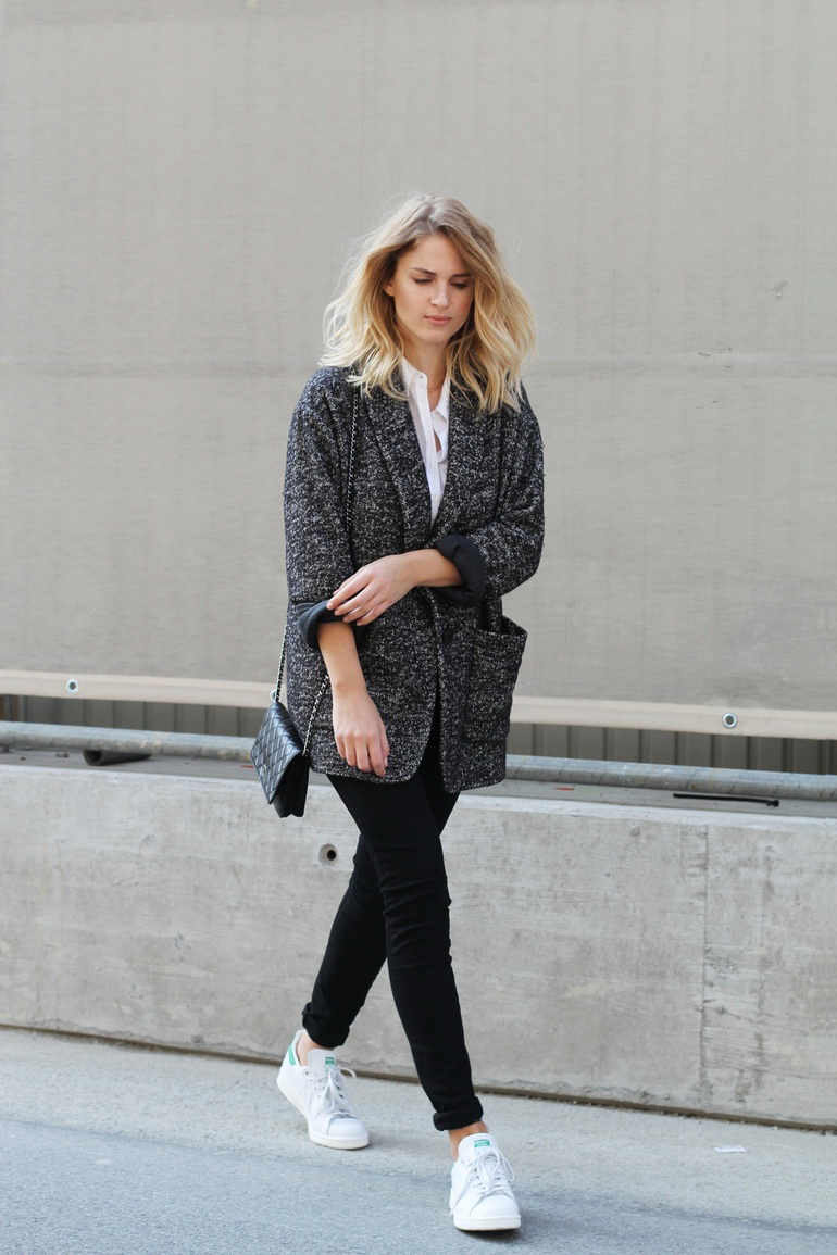 To make your image not too conservative, use light shades of gray. You can also add white elements to them so that the look looks fresher and more elegant. The bravest girls can experiment with other colors by adding accessories in yellow, red or green.