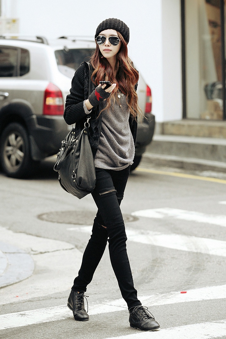 On the “Winter” girl, black looks flawless, with all the rest he emphasizes wrinkles and unevenness on his face, makes him tired and adds age.