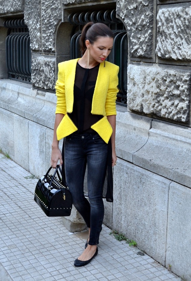 The contrasting combination of bright colors (against the background of yellow, black also looks bright) is immediately apparent to those around you. That is why it is necessary to treat this tandem very carefully, so as not to go beyond the line between brightness and frank tastelessness.