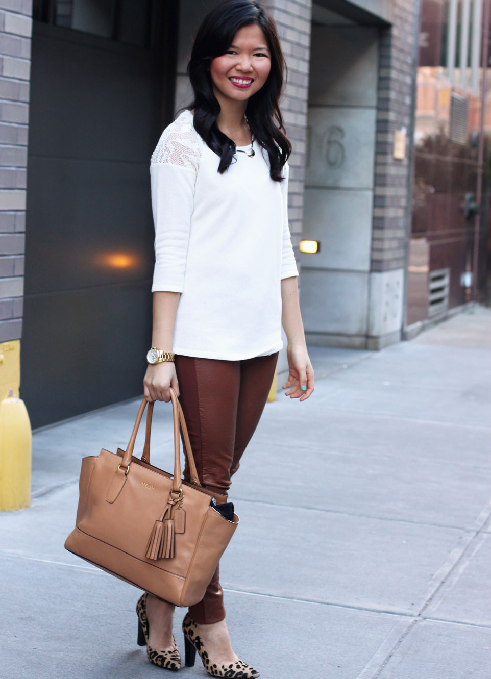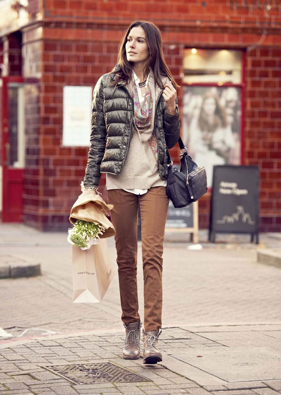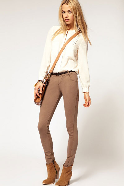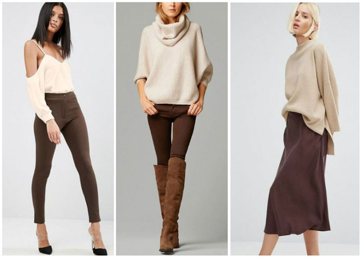 Brown shades are practical and versatile, so they are ideal for everyday wear. The basis of your image can be brown trousers or leggings.