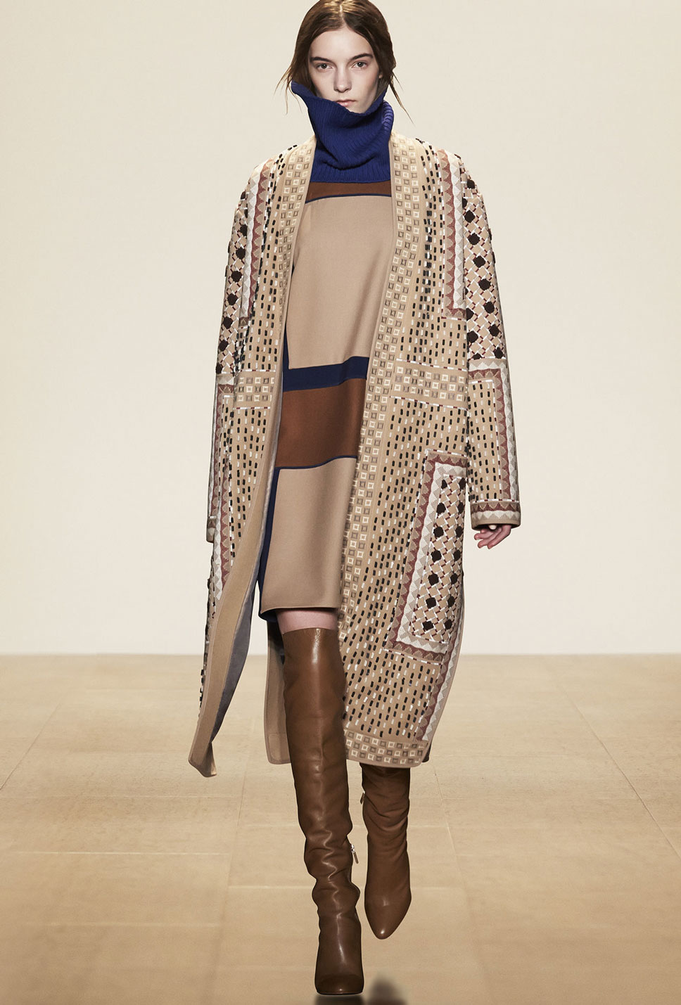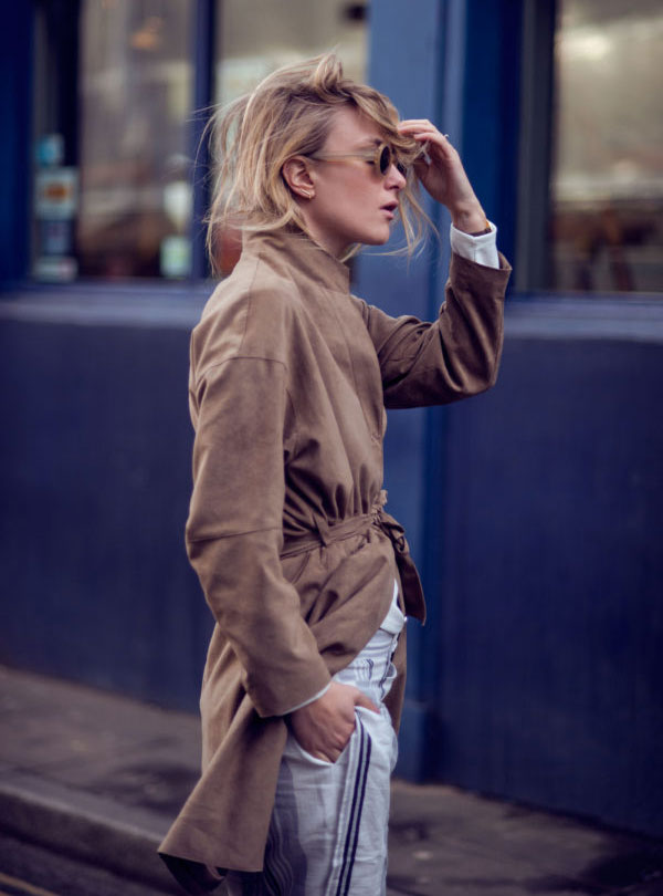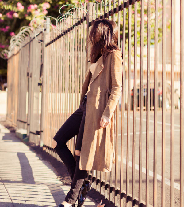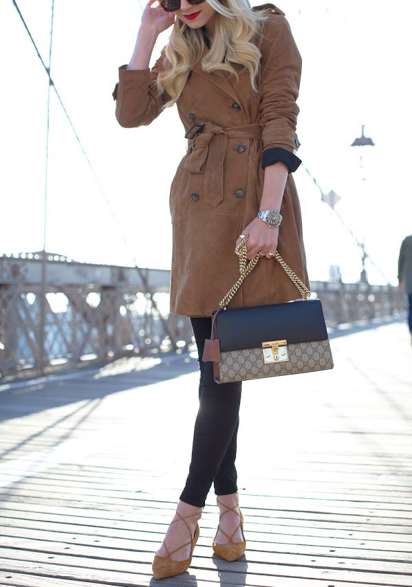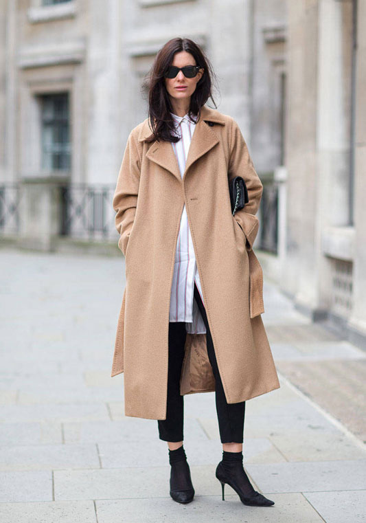 A tan coat is perfect for a sweet spring look and complements the romantic look. It will be well combined with a light skirt, trousers or a gentle dress.