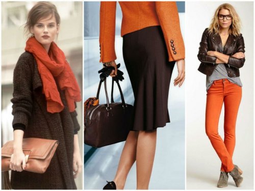 Refer to the shades of black coffee and chocolate, and season them with ripe orange peel - get an incredibly stylish look. You can complement the image with white or beige, such a trio would be appropriate even in a business wardrobe.